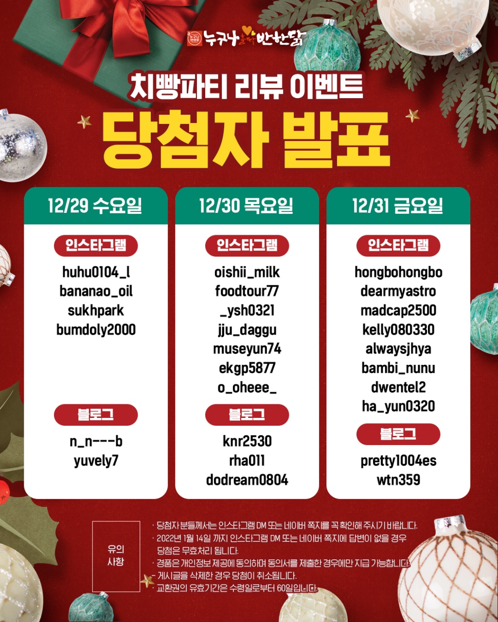 [당첨자발표⑤] 촉촉칸 치빵파티 먹고 리뷰쓰면 행운이 빵빵!