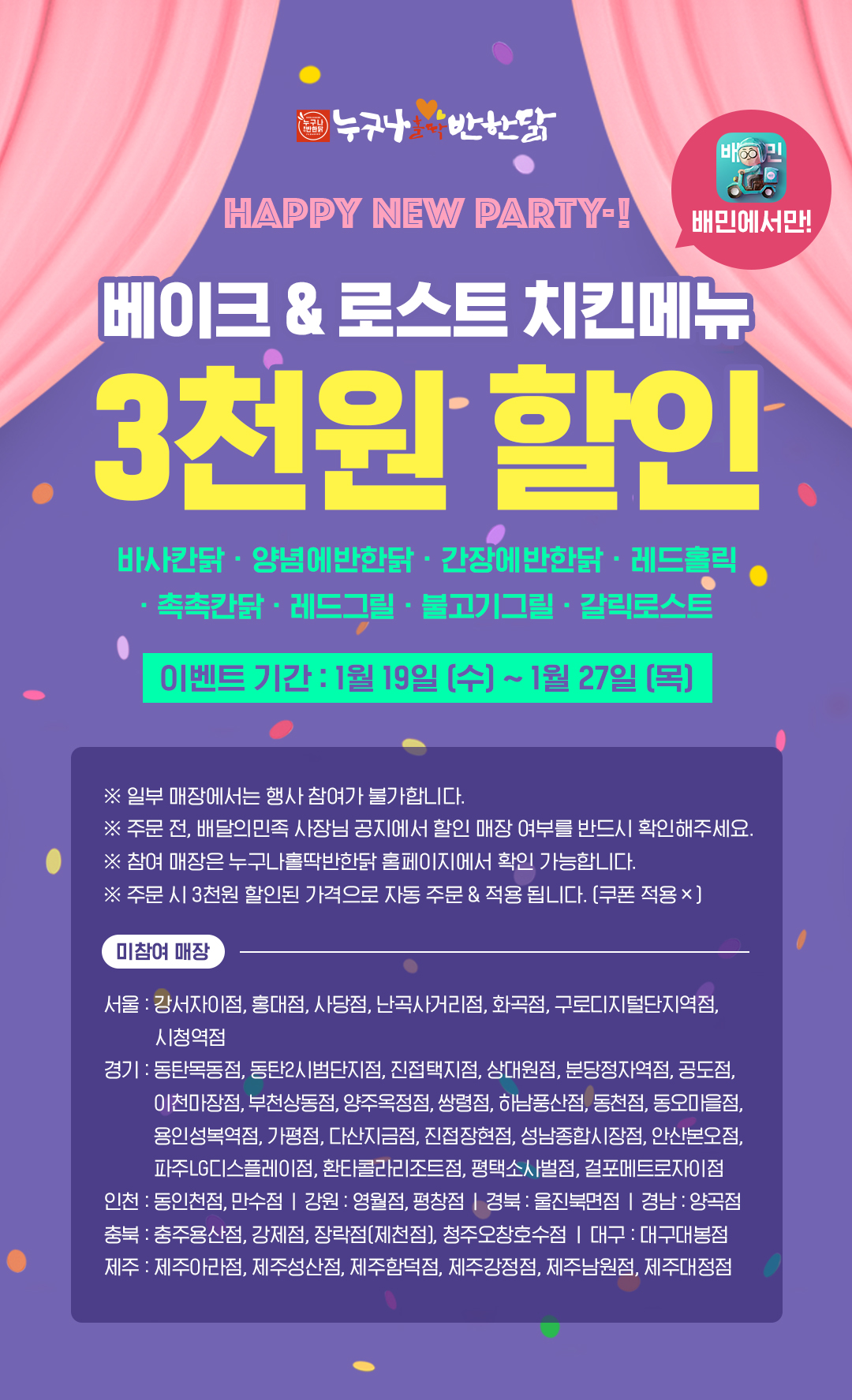 1/19~1/27 오직 배민에서만, 3천원 할인!