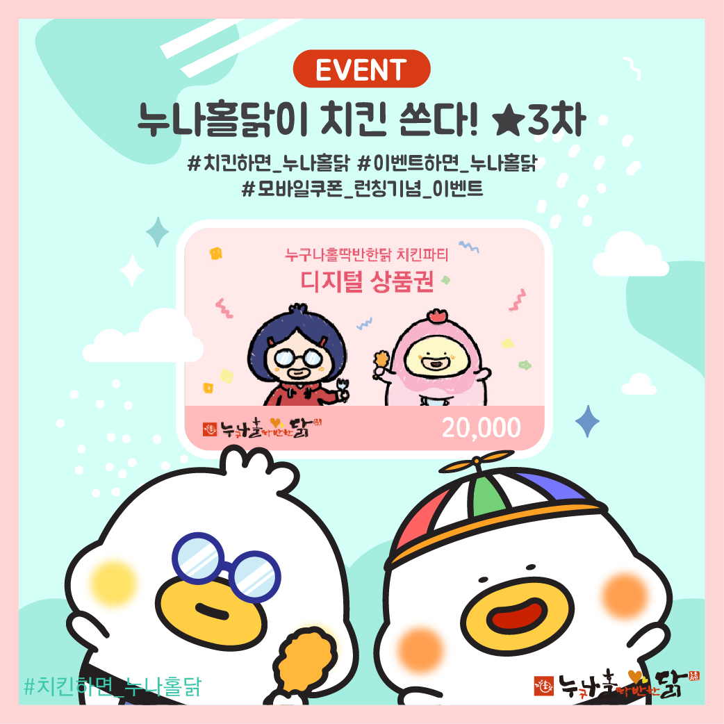 아직 누나홀닭 모바일쿠폰을 받지 못하신 팔로워분들이 많은 것 같아서 3차로 돌아온 이벤트!